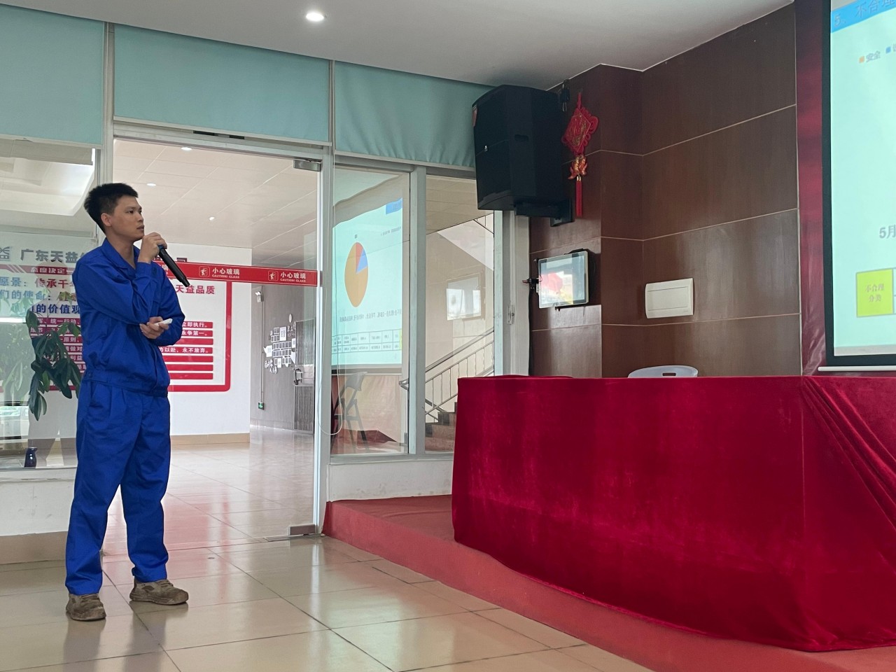 6月11日上午,第八次集中发表暨总结表彰大会盛大启幕。在第二改善小组郑日妹的主持下,各改善小组借助PPT手册,系统汇报5月份工作成果,月度回顾视频中改善活动的火热场景、培训课程的精彩瞬间以及技能比赛的激烈角逐依次呈现,赢得现场掌声雷动。