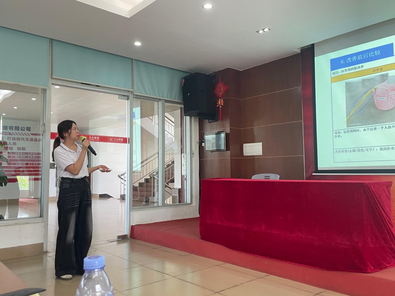 培训阶段,各项课程层层递进、干货满满。《精细化项目5月份开展情况进行小结与培训》对前期工作进行深度复盘,为后续优化指明清晰路径;《现场6S督导检查》深入生产一线,督促整改落实,确保生产环境始终保持整洁有序;《精益生产八大浪费与降本增效实训》结合行业标杆案例,系统解析过量生产、搬运冗余等浪费场景,配套《精益TQM全面质量管理实训》,帮助员工掌握浪费识别矩阵与效率提升模型,推动资源利用率实现阶梯式增长。